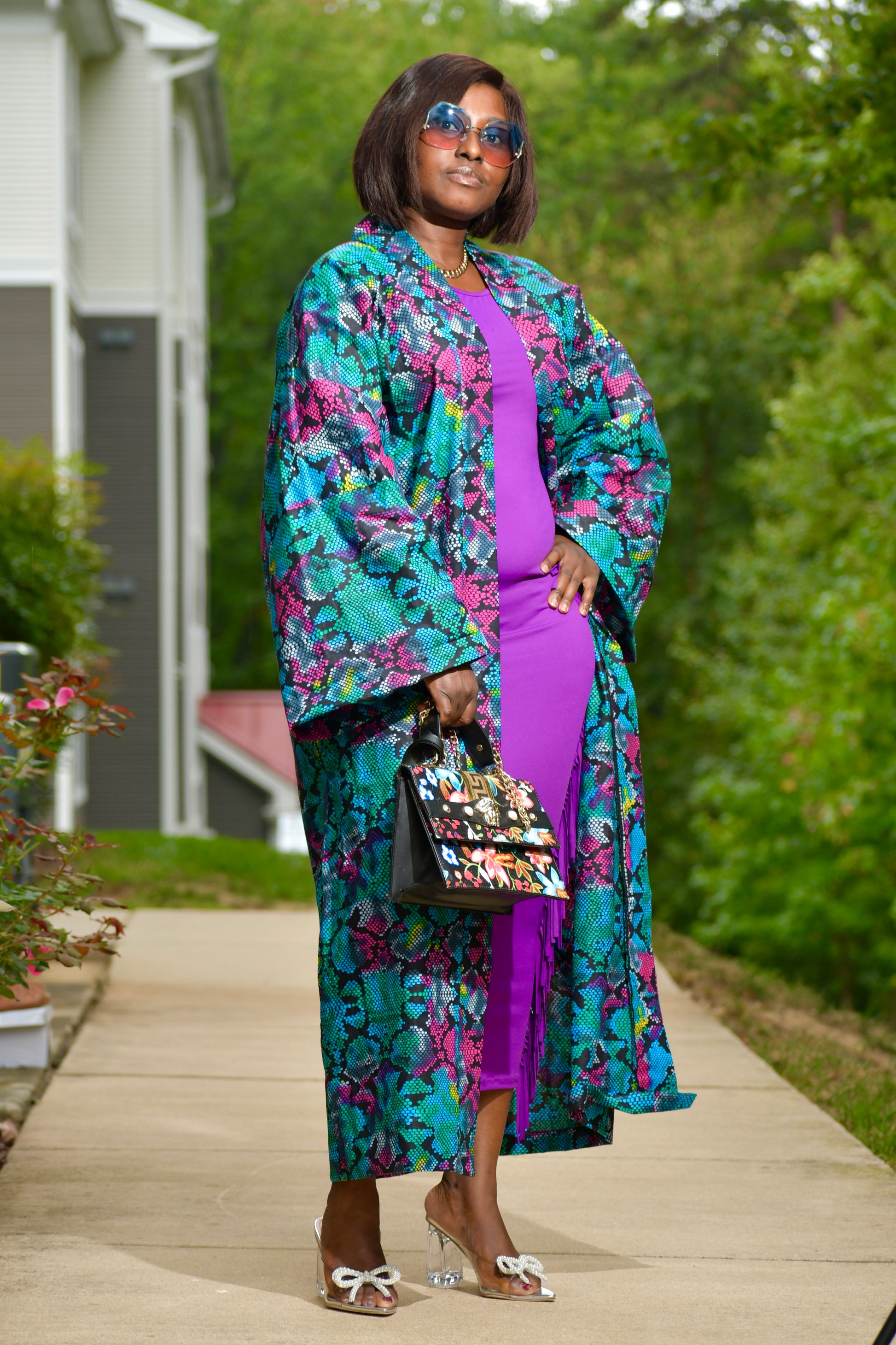 Colorful Leopard Pattarn Long Sleeve Kimono Jacket